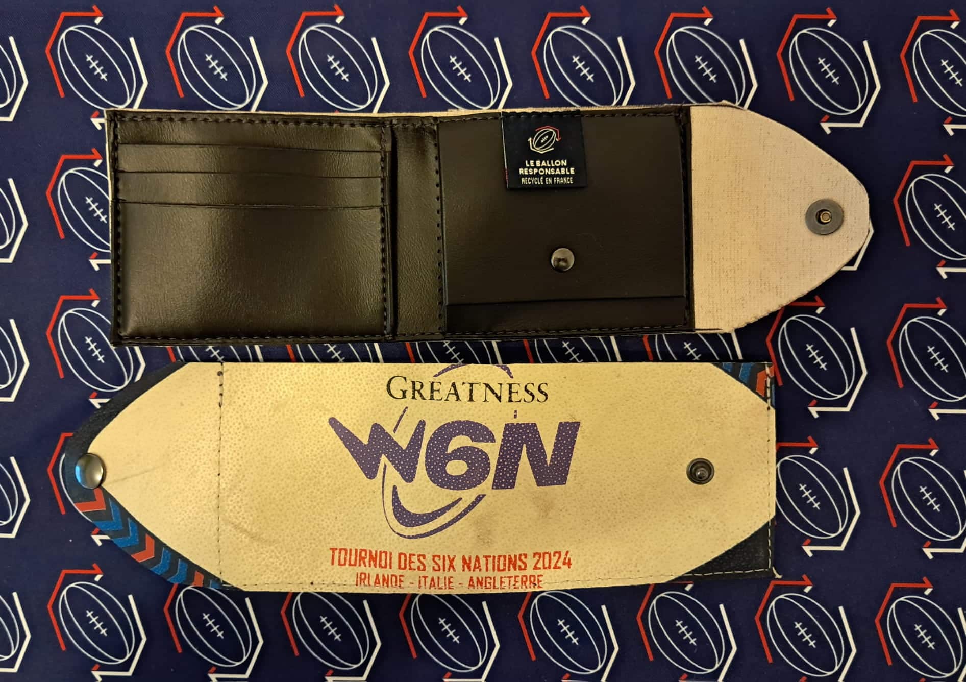 Alliez sport et élégance avec nos Portefeuilles TOURNOI DES 6 NATIONS (W6N féminin) conçus à partir de ballons recyclés.
