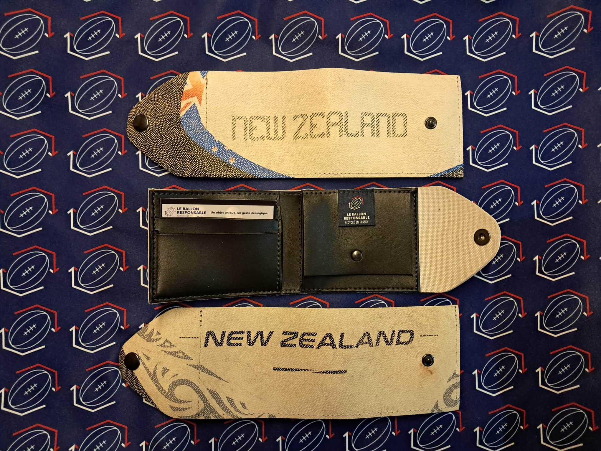 Découvrez l’authenticité avec nos Portefeuilles Nouvelle Zélande fabriqués à partir de ballons de rugby recyclés.