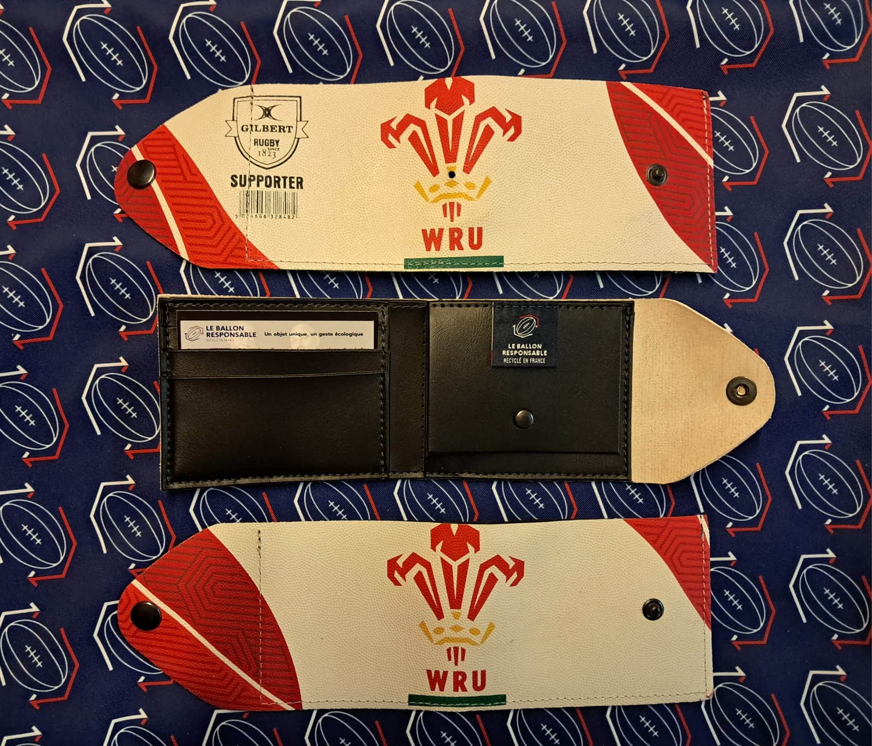 Exprimez votre style avec nos Portefeuilles ‘Gilbert’ PAYS DE GALLES conçus en ballons de rugby recyclés.