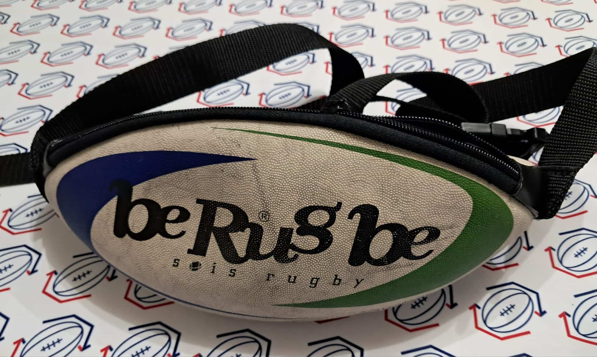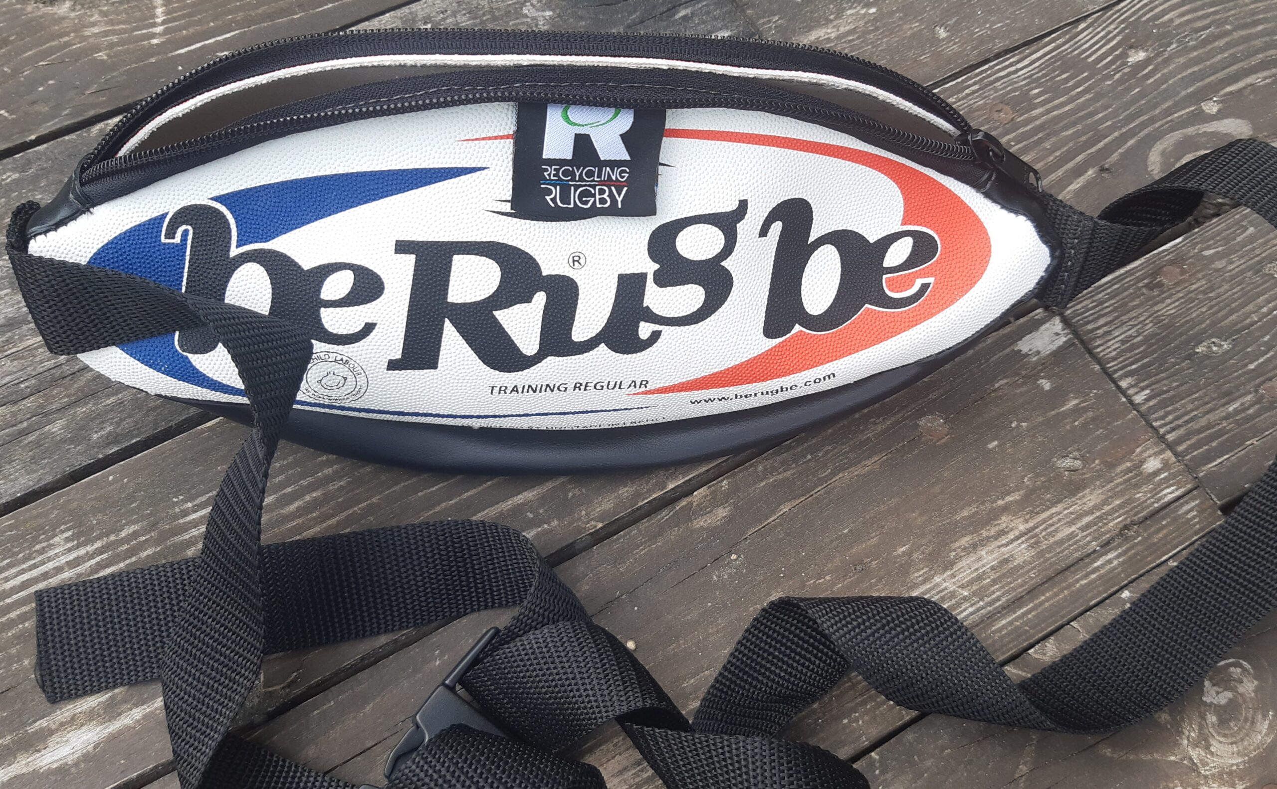Affirmez votre style avec ce sac banane BeRugBe fabriqué à partir d’un ballon de rugby recyclé.