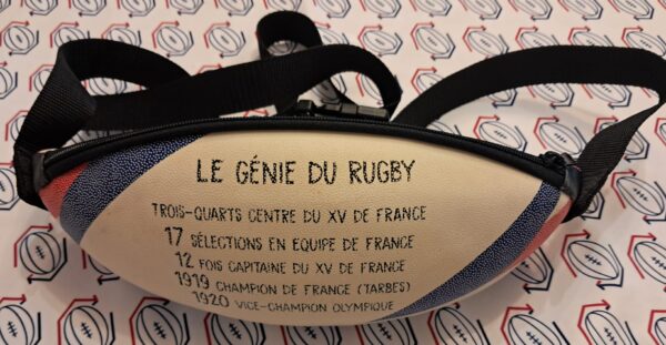 Exprimez votre originalité avec ce sac banane Génie du Rugby en ballon recyclé.