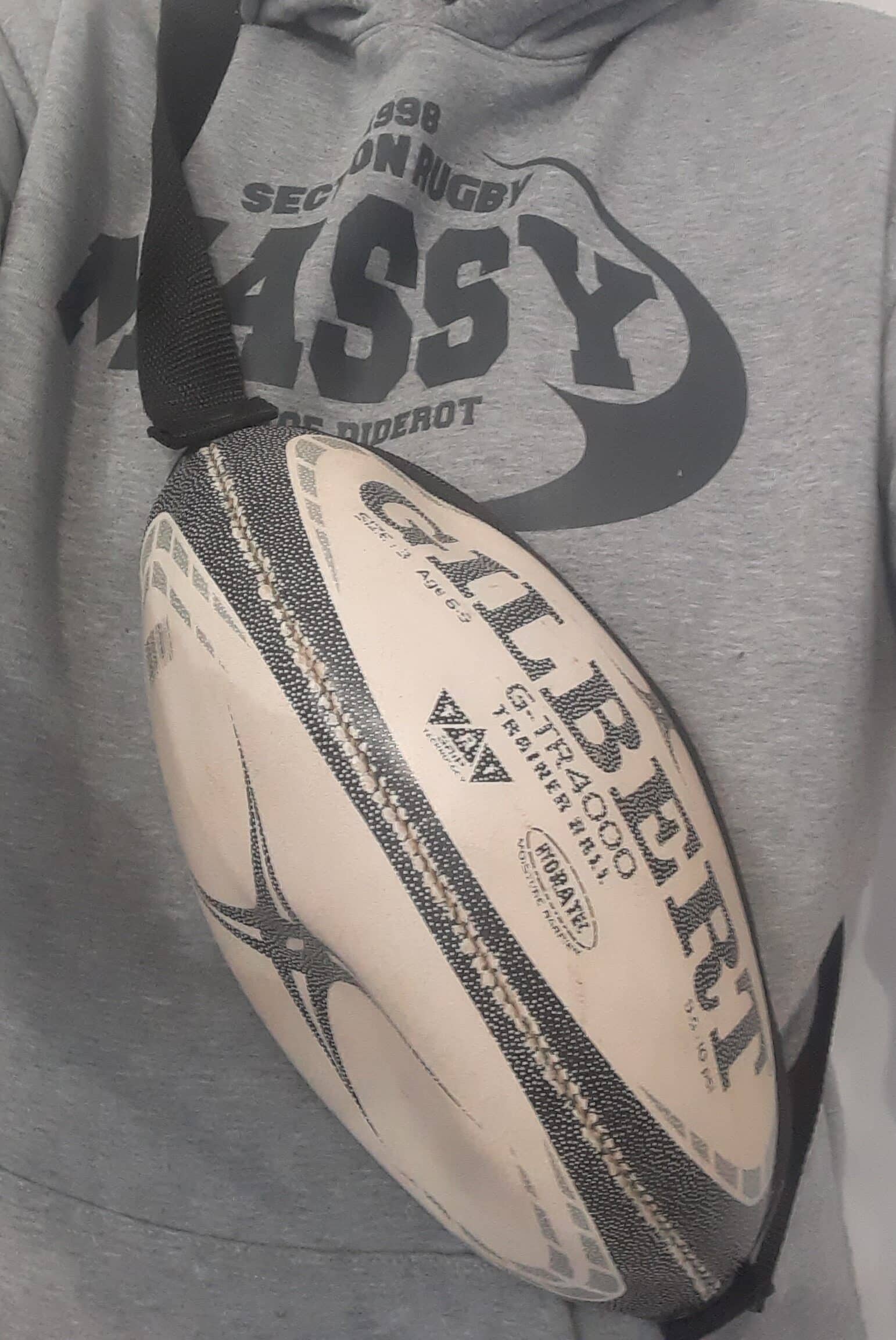 Jouez la carte de l’élégance brute avec ce sac banane conçu à partir d’un ballon Gilbert noir recyclé.