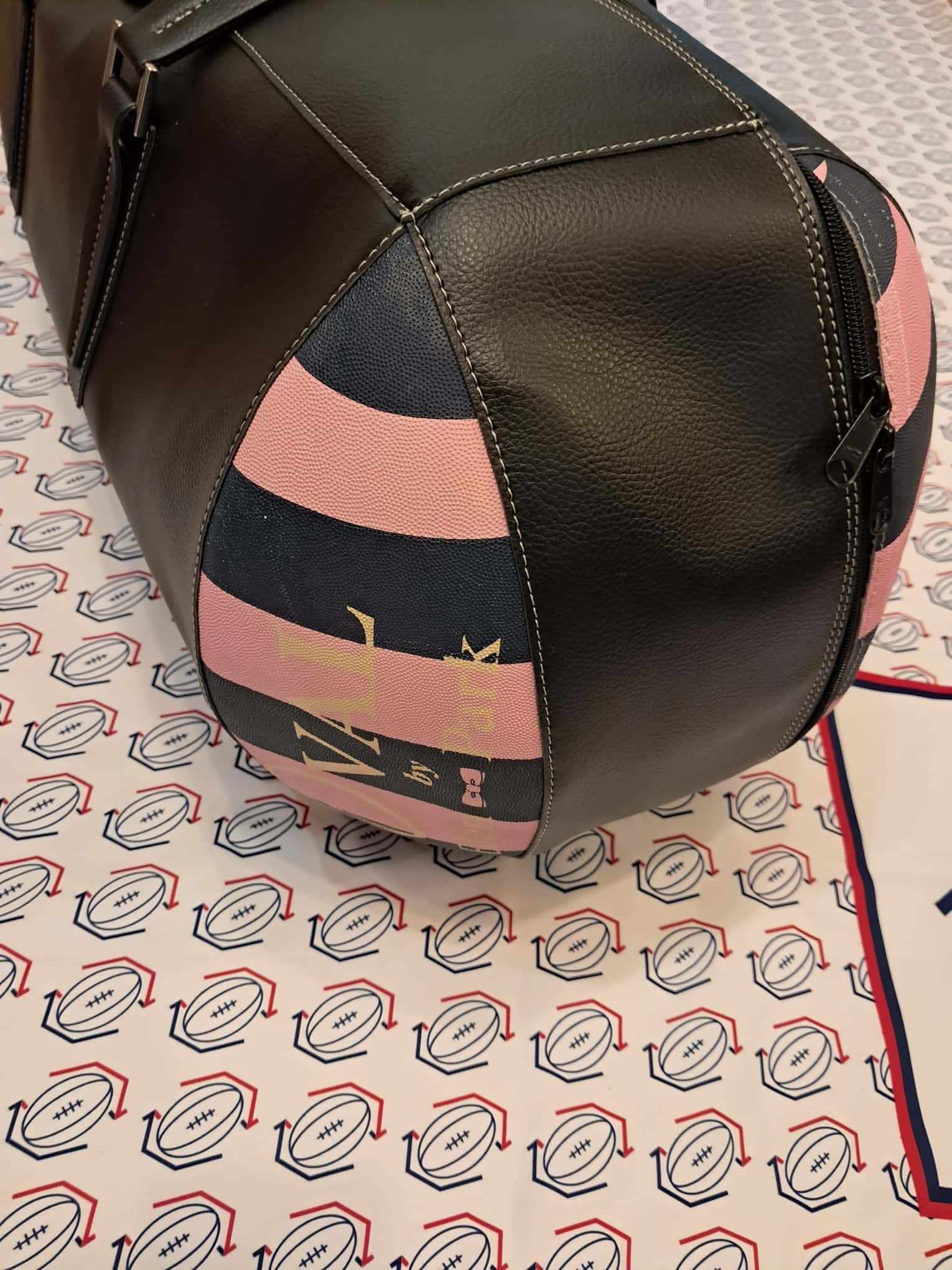 Sac de luxe Eden Park (Rose / Bleu mer) : une création d’exception en ballon de rugby recyclé.