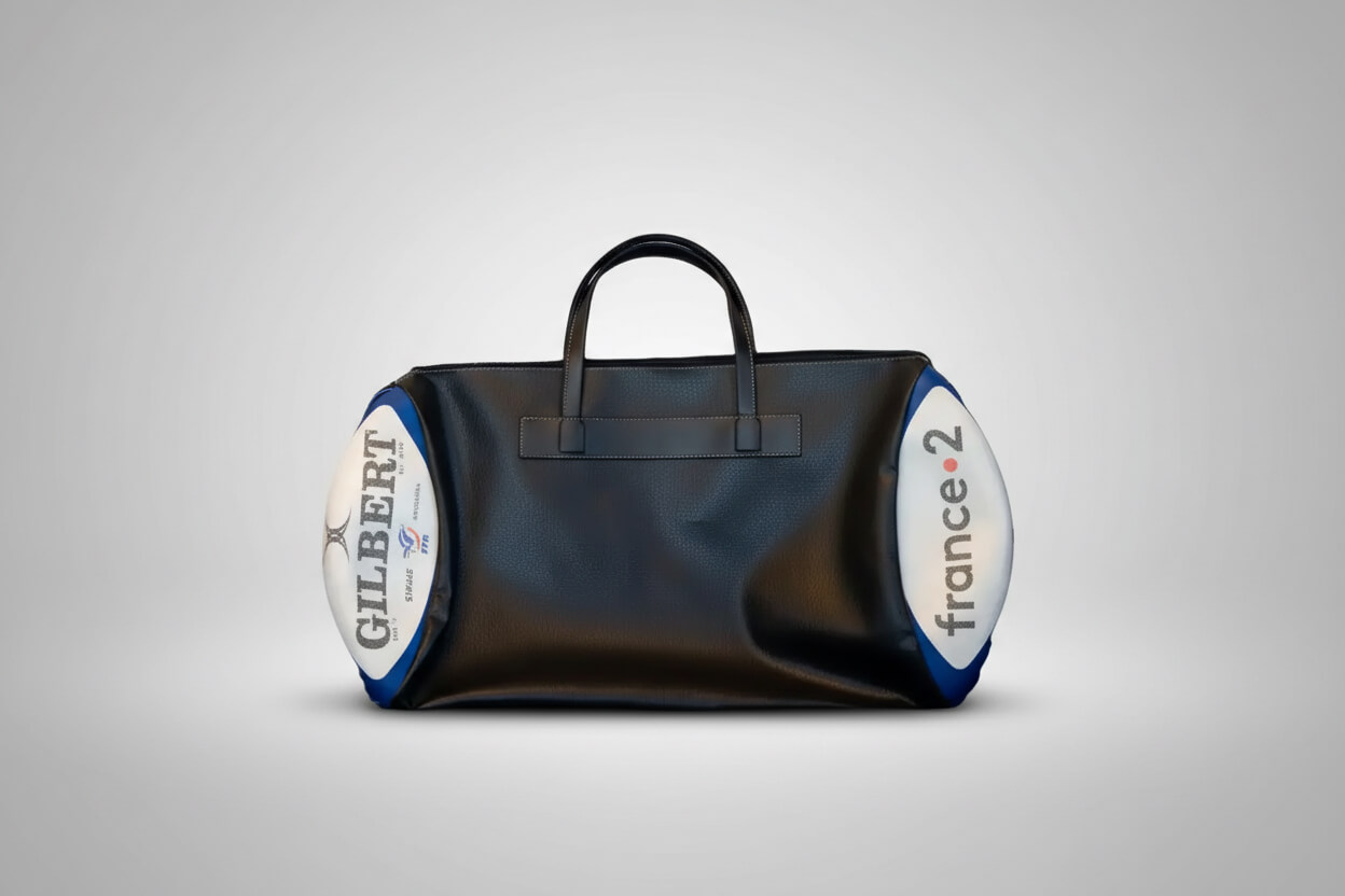 Sac de sport Ballon Gilbert FFR France 2 noir conçu à partir d’un véritable ballon de rugby Ballon Gilbert FFR France 2 recyclé.