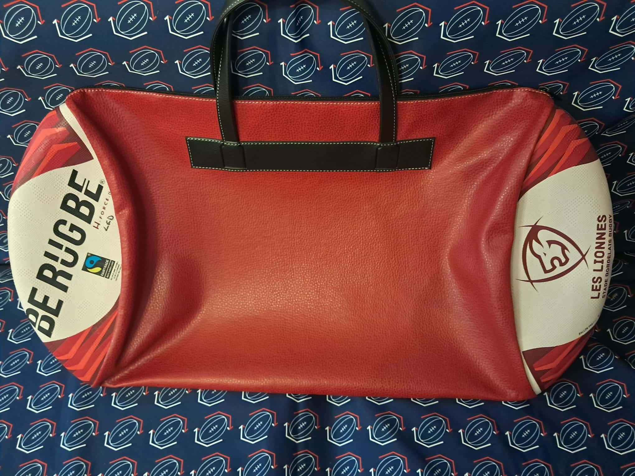 Sac de sport fabriqué en France à partir de ballons de rugby recyclés.