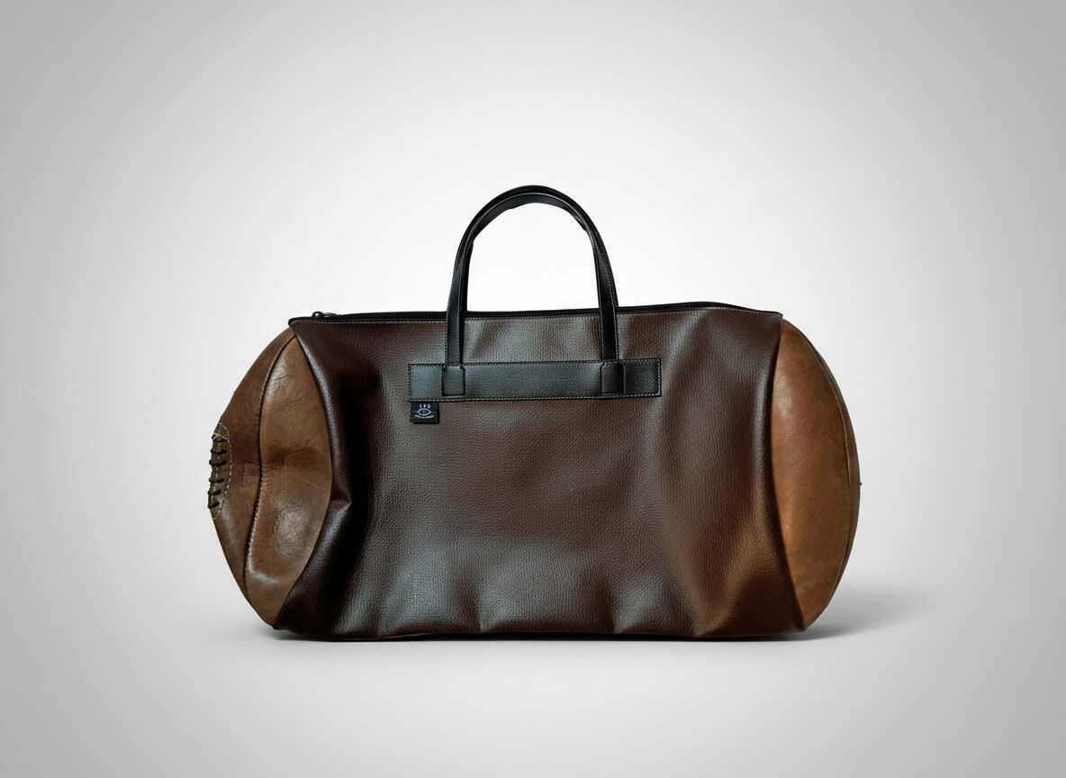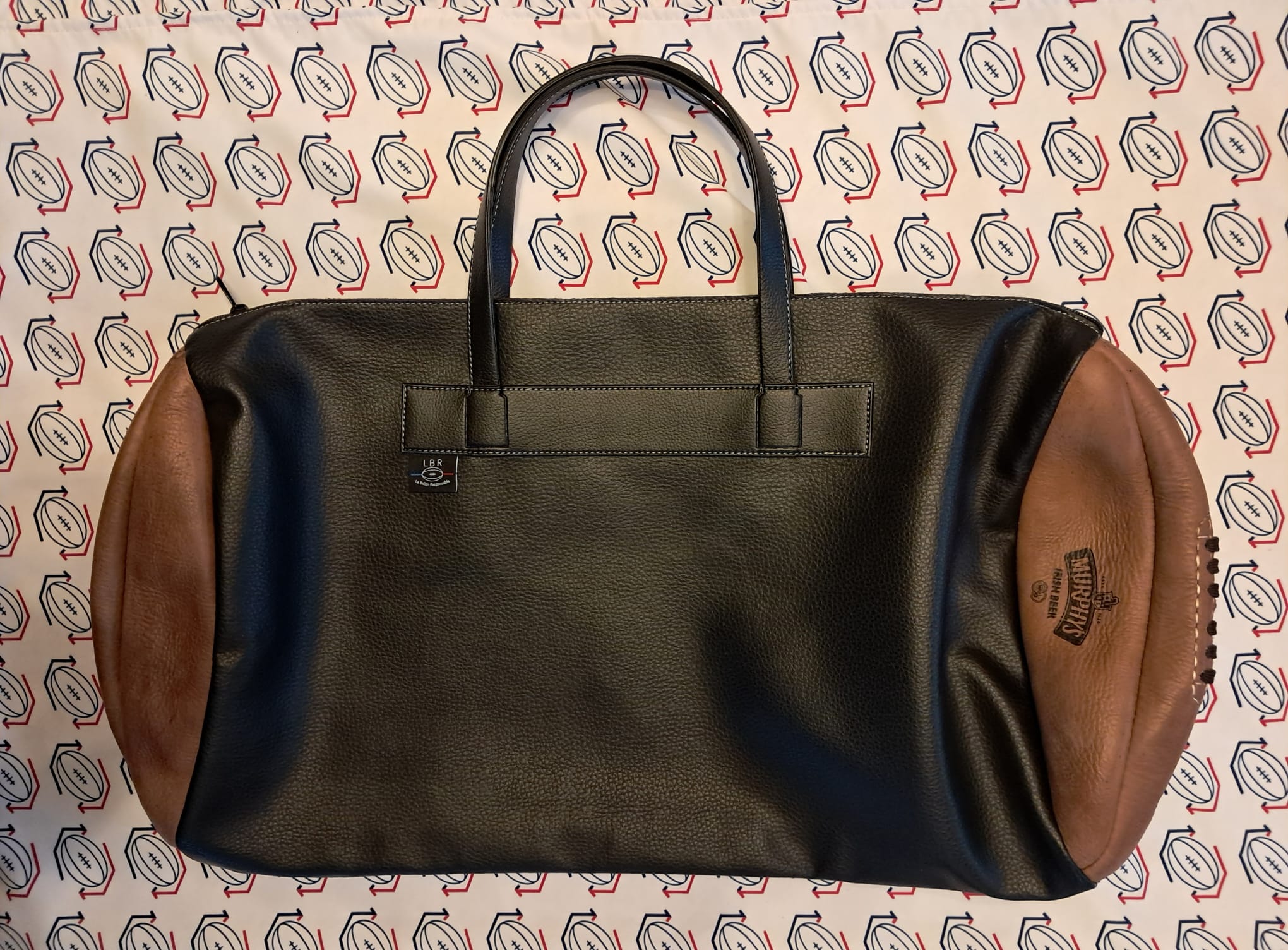 Sac de sport fabriqué en France à partir de ballons de rugby recyclés.