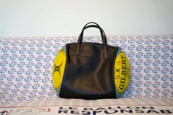 Sac week-end Ballon Gilbert GTR4000 Jaune noir : le compagnon idéal pour vos escapades, fabriqué à partir d’un ballon de rugby Ballon Gilbert GTR4000 Jaune recyclé.