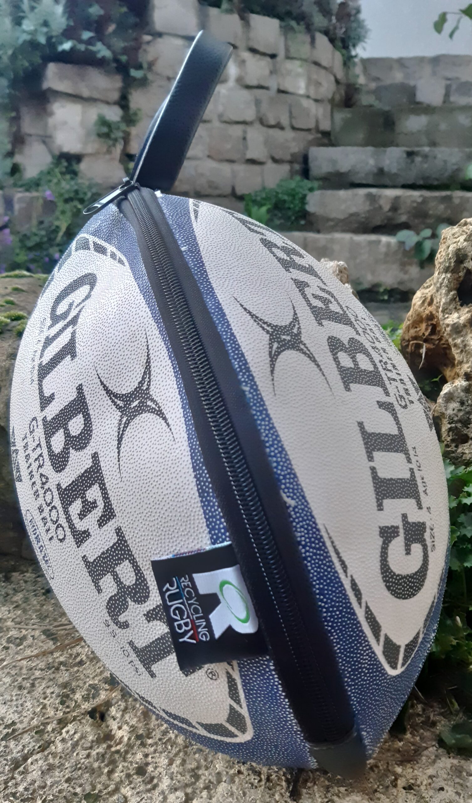 Fabriquée en France, elle conserve les teintes sportives et les marquages du ballon d’origine. Son style épuré séduit autant les amateurs de rugby que ceux à la recherche d’un accessoire sobre et solide.