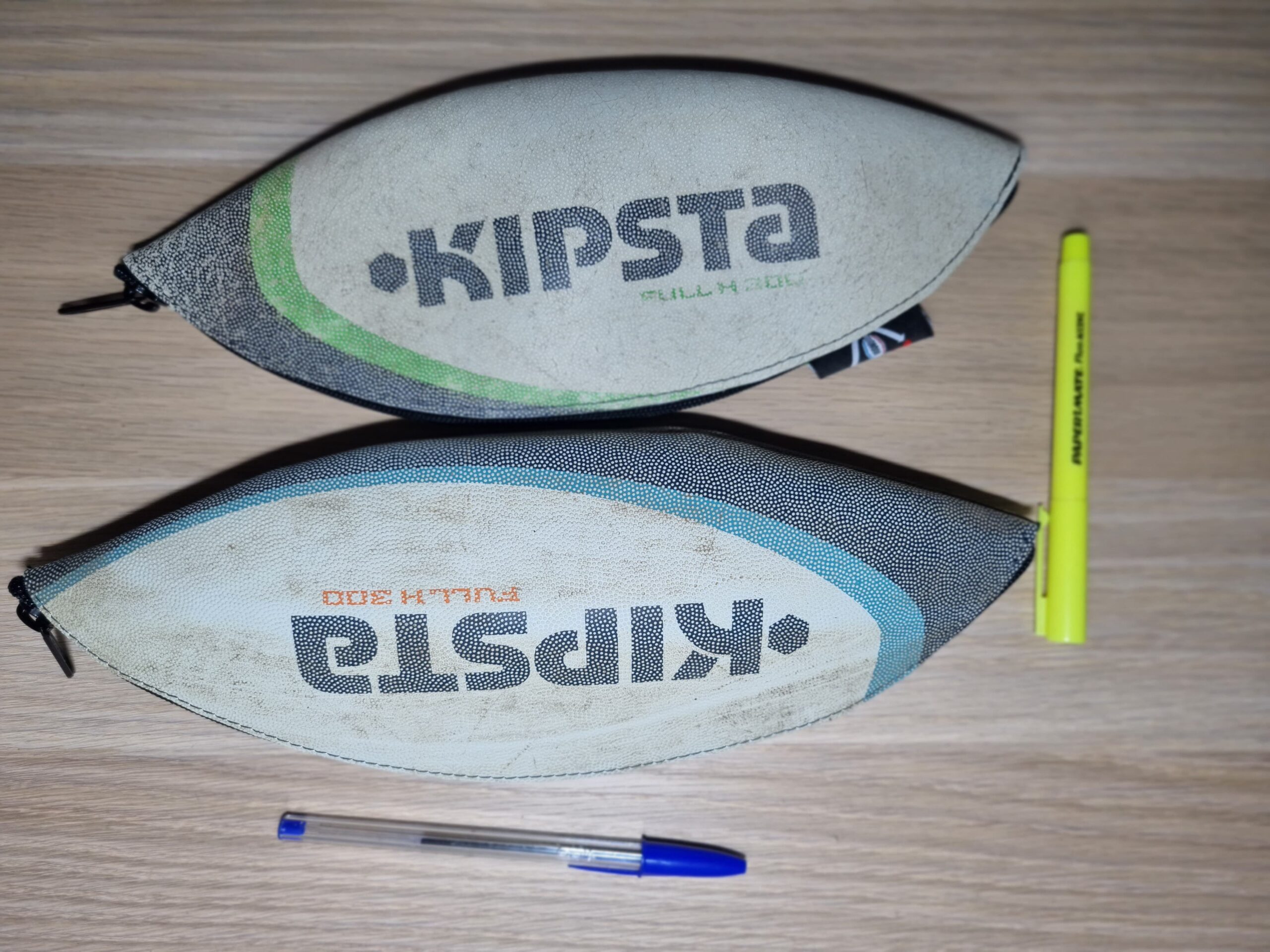 Offrez à vos enfants une trousse d’écolier unique, fabriquée à partir d’un ballon de rugby recyclé – modèle Kipsta.