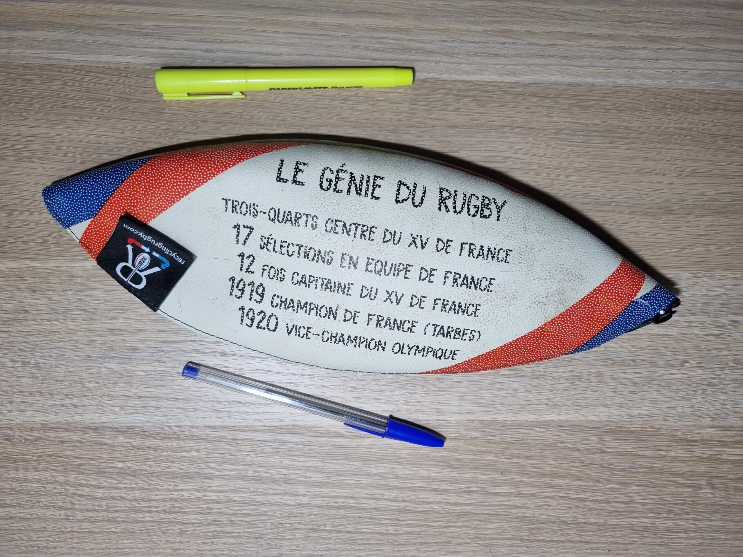 Offrez à vos enfants une trousse d’écolier unique, fabriquée à partir d’un ballon de rugby recyclé – modèle Le Génie du Rugby.