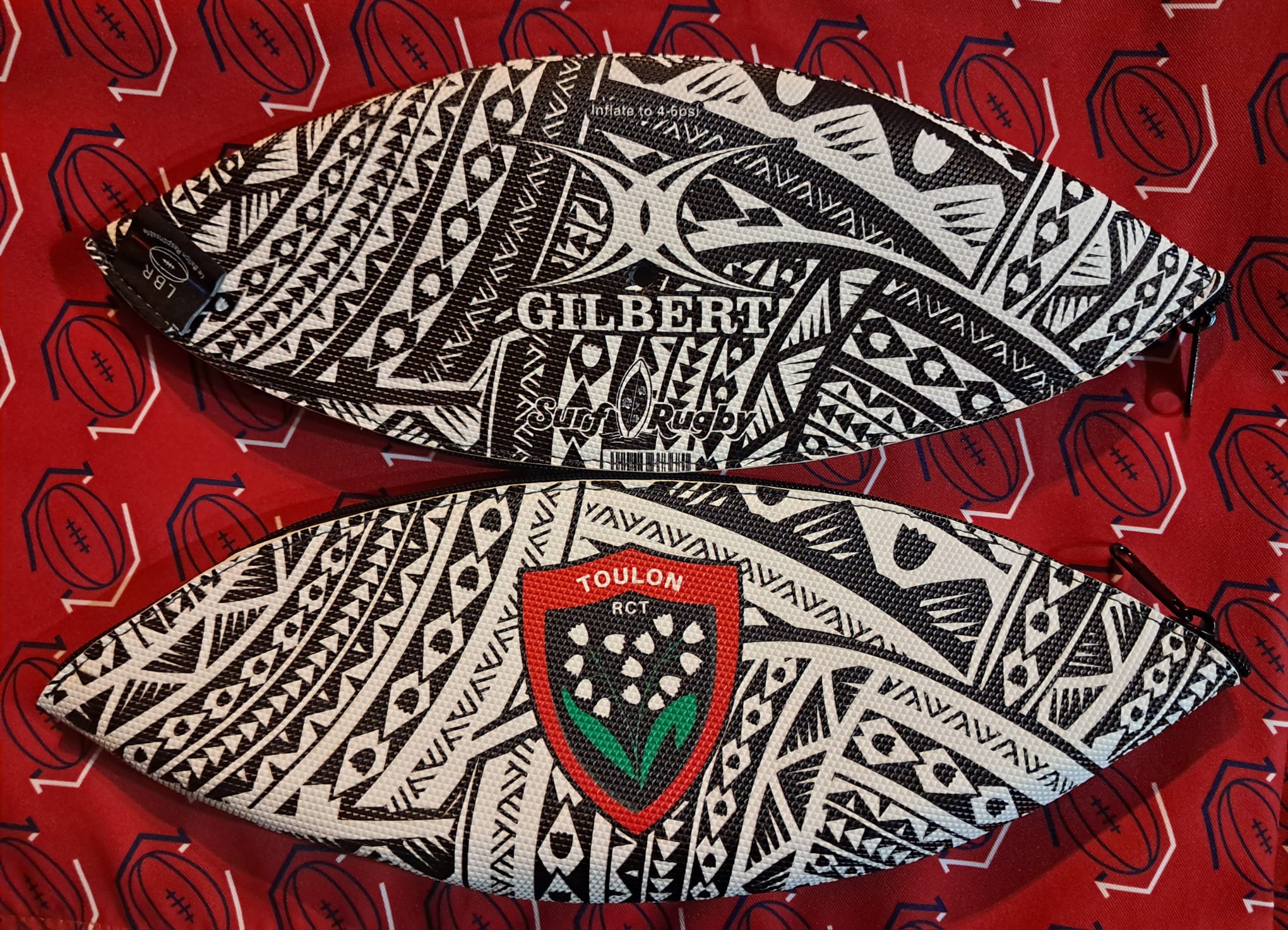 Offrez à vos enfants une trousse d’écolier unique, fabriquée à partir d’un ballon de rugby recyclé – modèle R.C. Toulon beach.