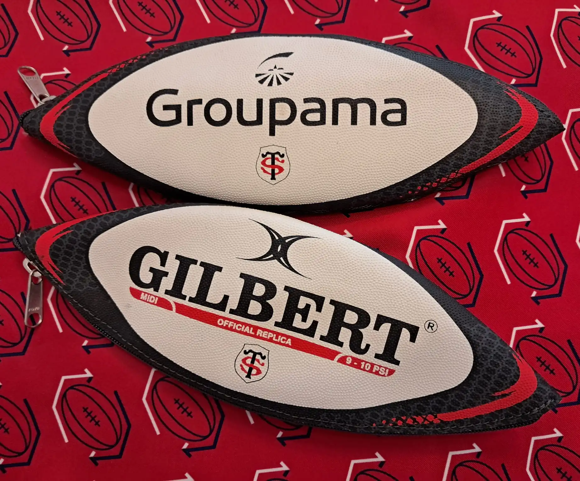 Offrez à vos enfants une trousse d’écolier unique, fabriquée à partir d’un ballon de rugby recyclé – modèle Stade Toulousain.